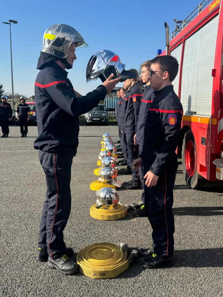 Le point d’orgue de la journée fut, sans conteste, la cérémonie de remise de casque. Ce geste, loin d’être un simple protocole administratif, est chargé d’une profonde émotion. Conformément à la tradition, chaque volontaire a reçu son équipement des mains d’une personne de son choix — souvent un proche ou un membre de la famille — symbolisant un engagement reconnu et désormais partagé avec l’entourage.