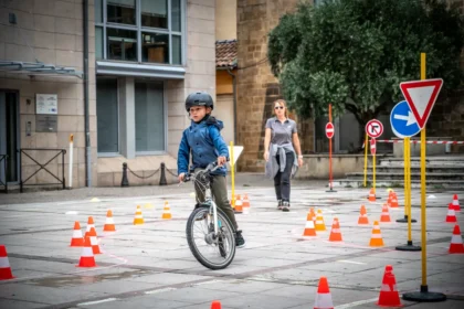La circulation à vélo, au cœur d’une journée famille, place Emma Calvé à Millau